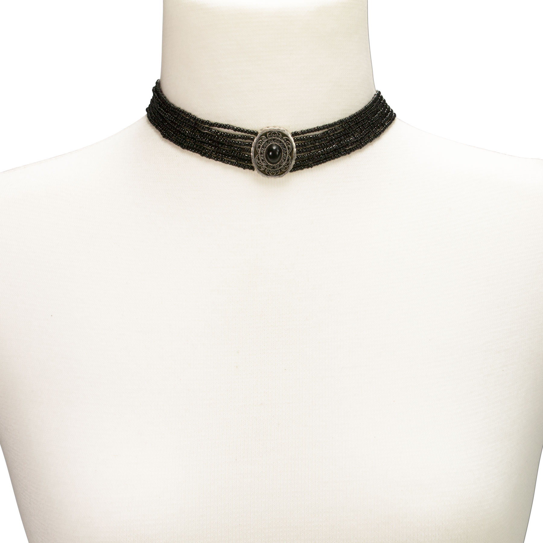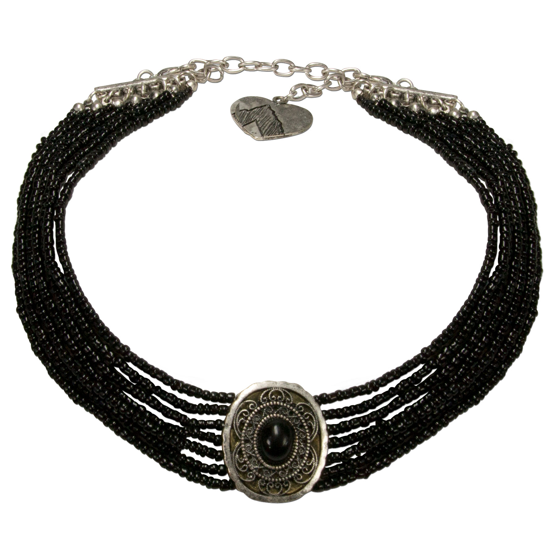 Ketting met 6 rijen zwarte stenen en ornament aantal